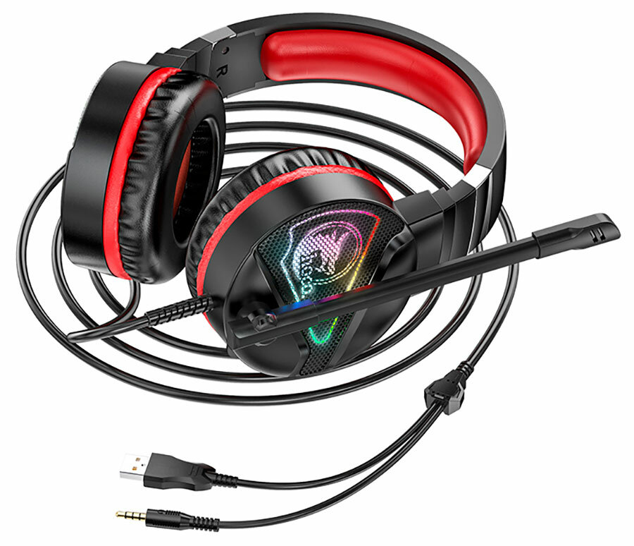 Наушники игровые Hoco W104 Drift gaming headphones, USB + 3.5мм, кабель 2м, красный