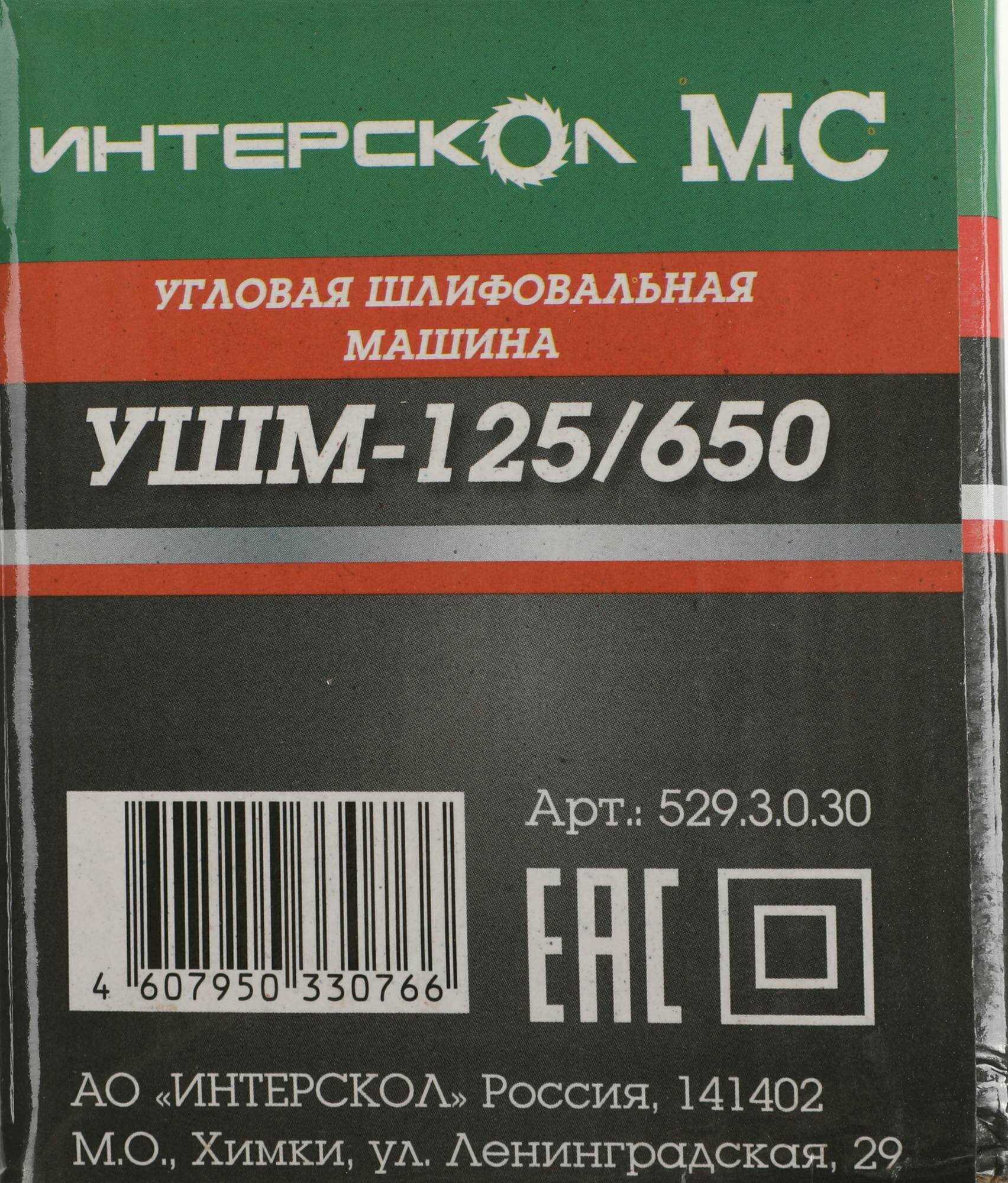Угловая шлифмашина ИНТЕРСКОЛ 125/650 МС 529.3.0.30