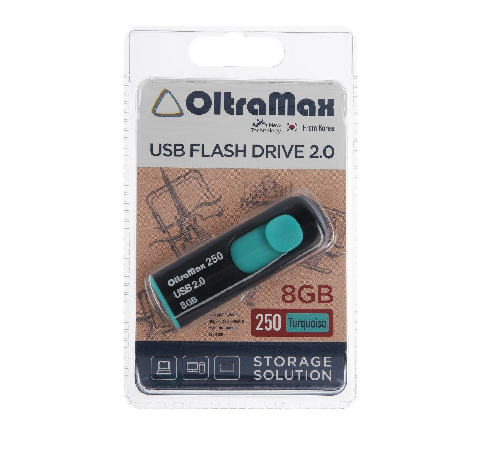 Память USB 8Gb OltraMax 250 бирюзовый (OM8GB250-Turquoise)