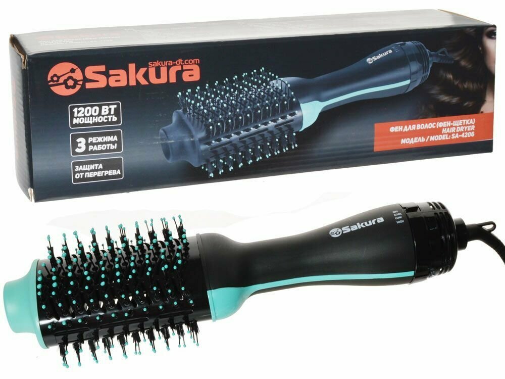 Фен-щётка SAKURA SA-4206BL 1200 Вт, черный/бирюзовый