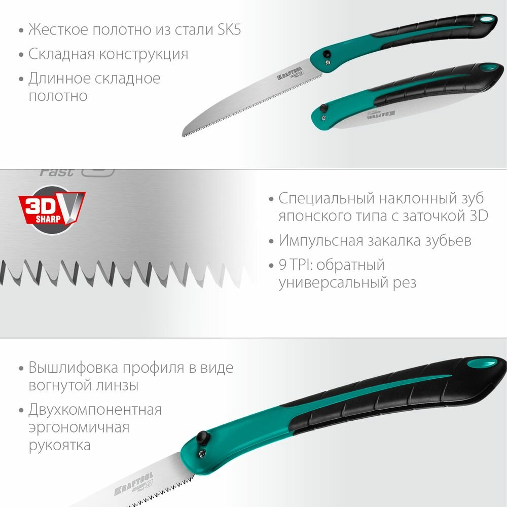 KRAFTOOL Camp Fast 9, 250 мм, ножовка для быстрого реза сырой древесины (15218)