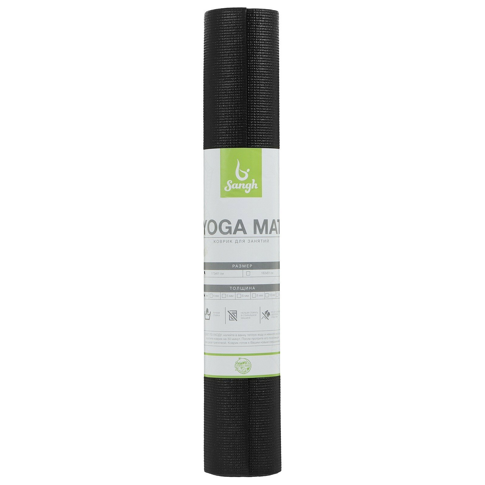 Коврик для йоги 173 х 61 х 0,5 см, цвет чёрный (1 шт.)