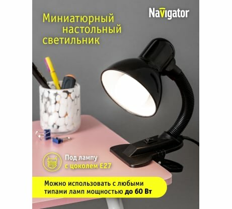 Настольная лампа NAVIGATOR GROUP Navigator 61 640 NDF-C011-60W-BL-E27 прищепка, черный