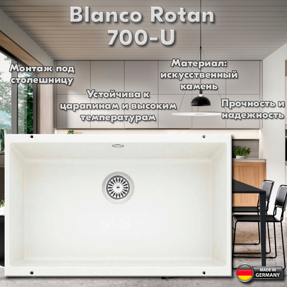 Кухонная мойка Blanco ROTAN 700-U белый Silgranit 521346 интересное: