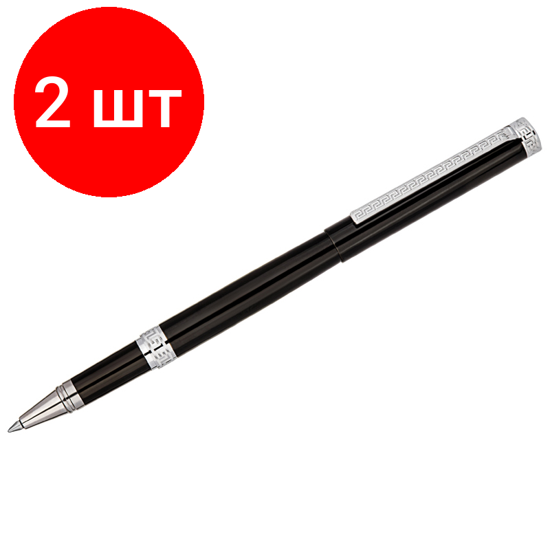 Купить Комплект 2 шт, Ручка-роллер Delucci "Classico" черная, 0.6мм, цвет корпуса - черный/хром, подарочная упаковка