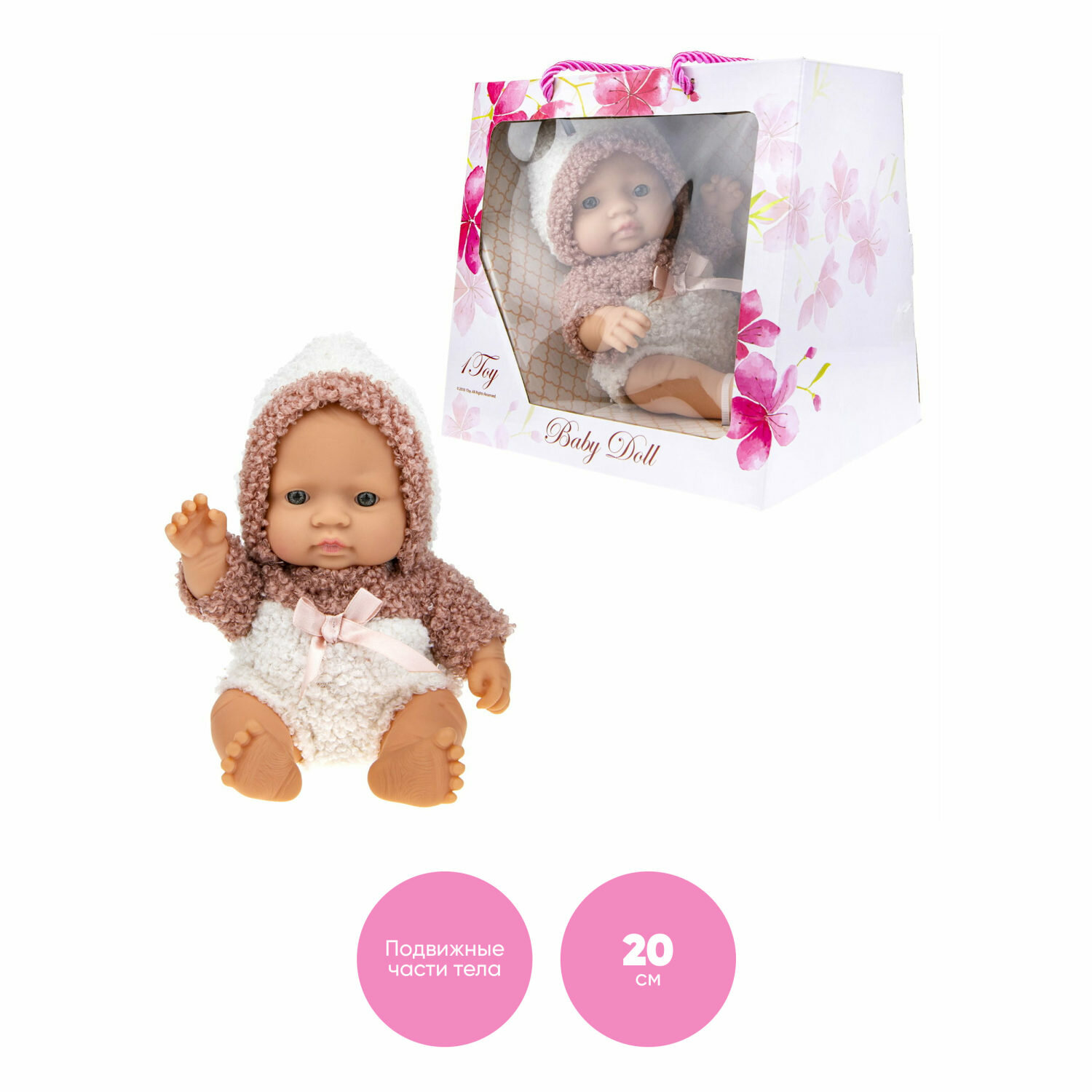 Купить 1toy PREMIUM Пупс в теплом коричневом комбинезоне 20 см, премиум кор.с ручками