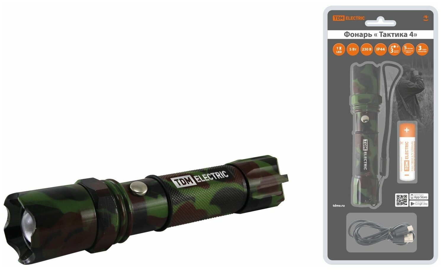 Фонарь Tdm Electric "Тактика 4", аккум.,1 LED 5 Вт CREE, 170 лм, алюм., фокус., 1х18650, SQ0350-0053