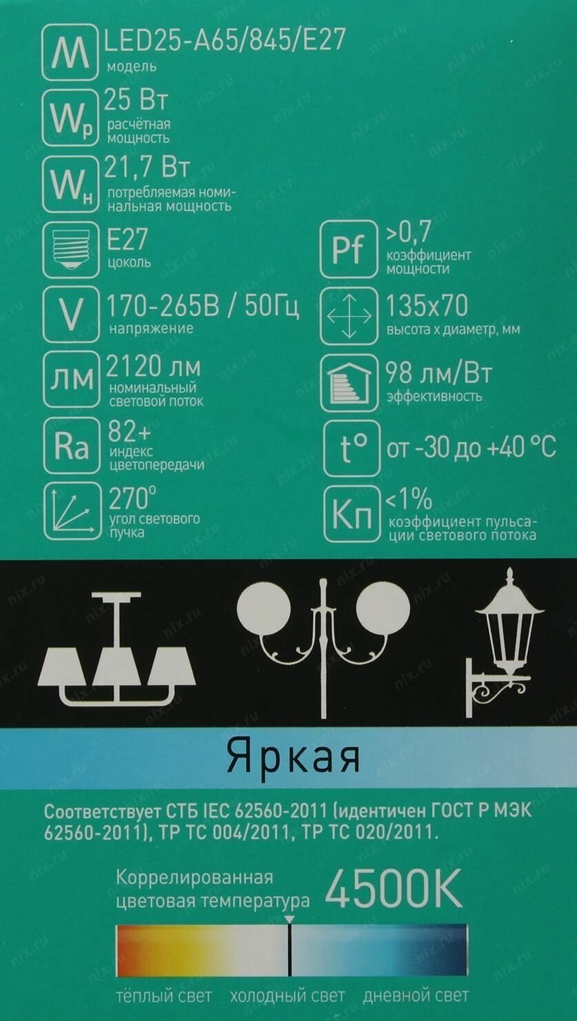 | Тип цоколя | E27 |