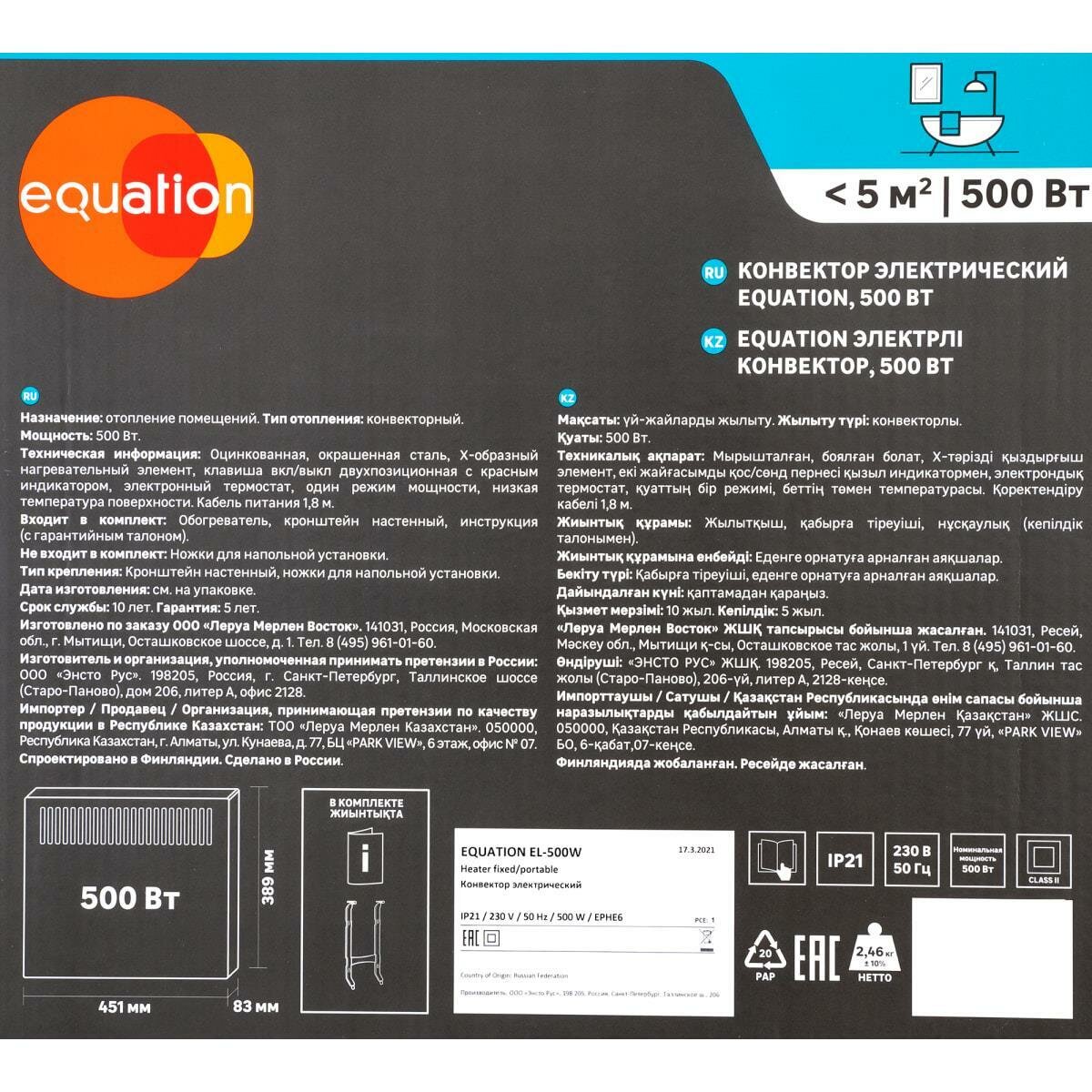 EQUATION EL-500W конвектор с электронным термостатом 500Вт / EQUATION EL-500W обогреватель конвекторный с электронным термостатом 500Вт