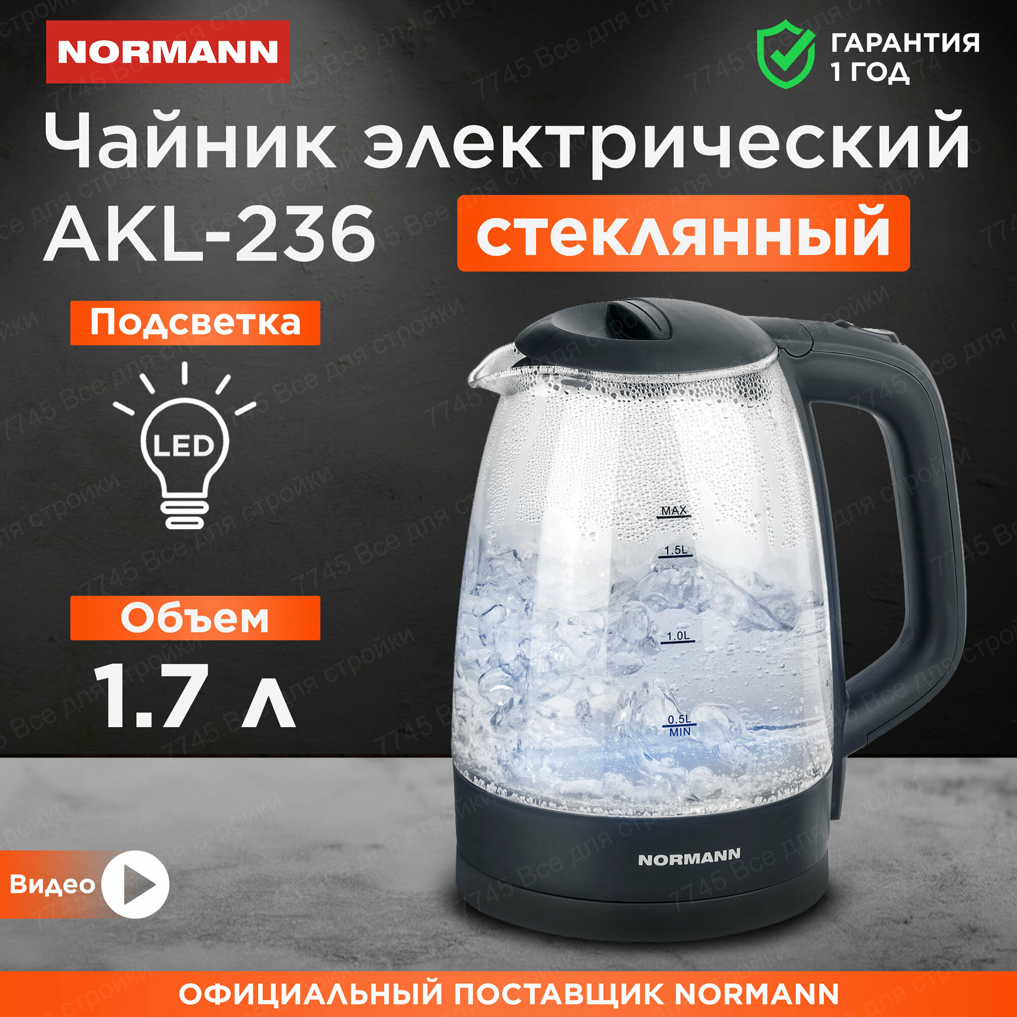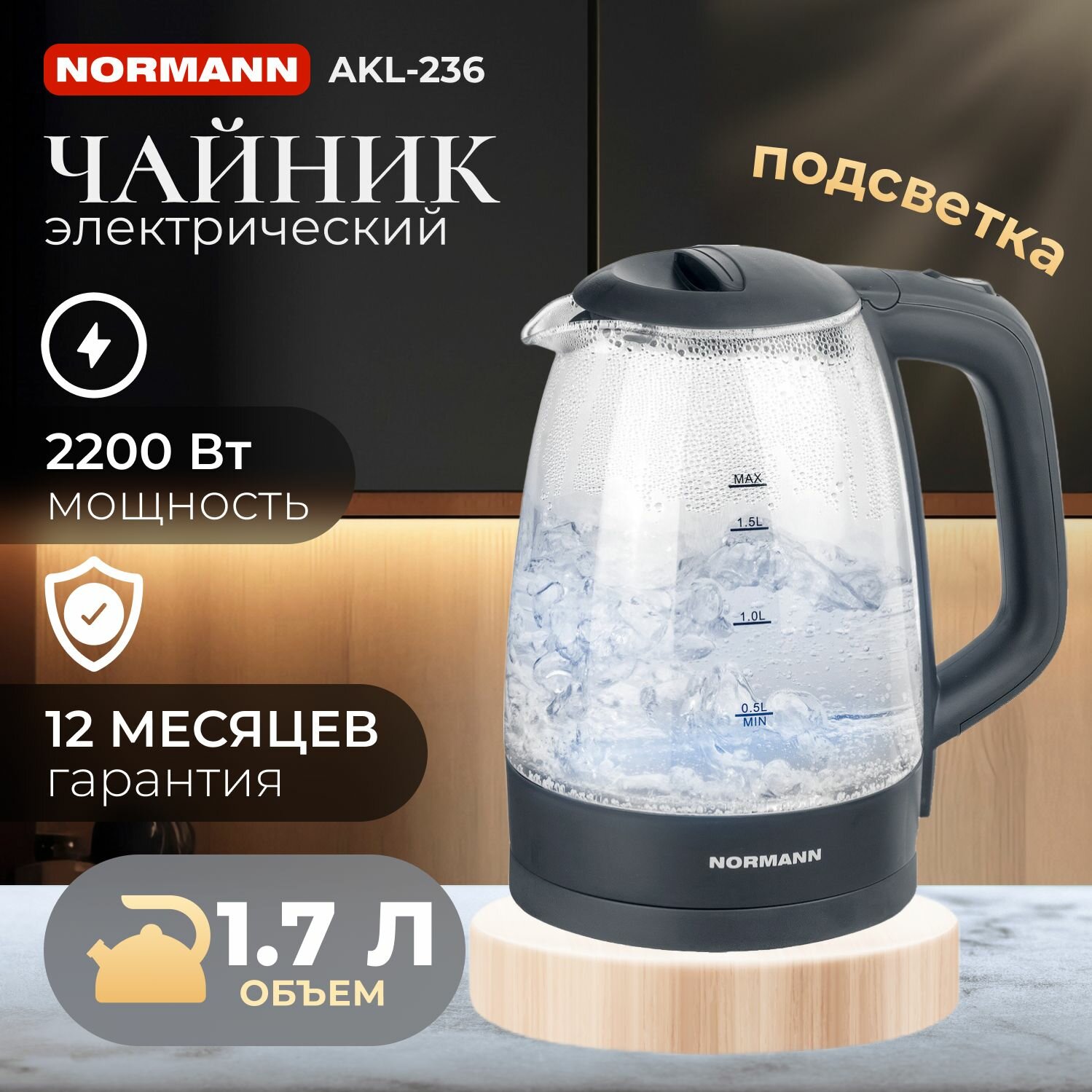 Чайник электрический AKL-236 NORMANN (2200 Вт; 1,7 л; стекло; подсветка) (AKL-236)