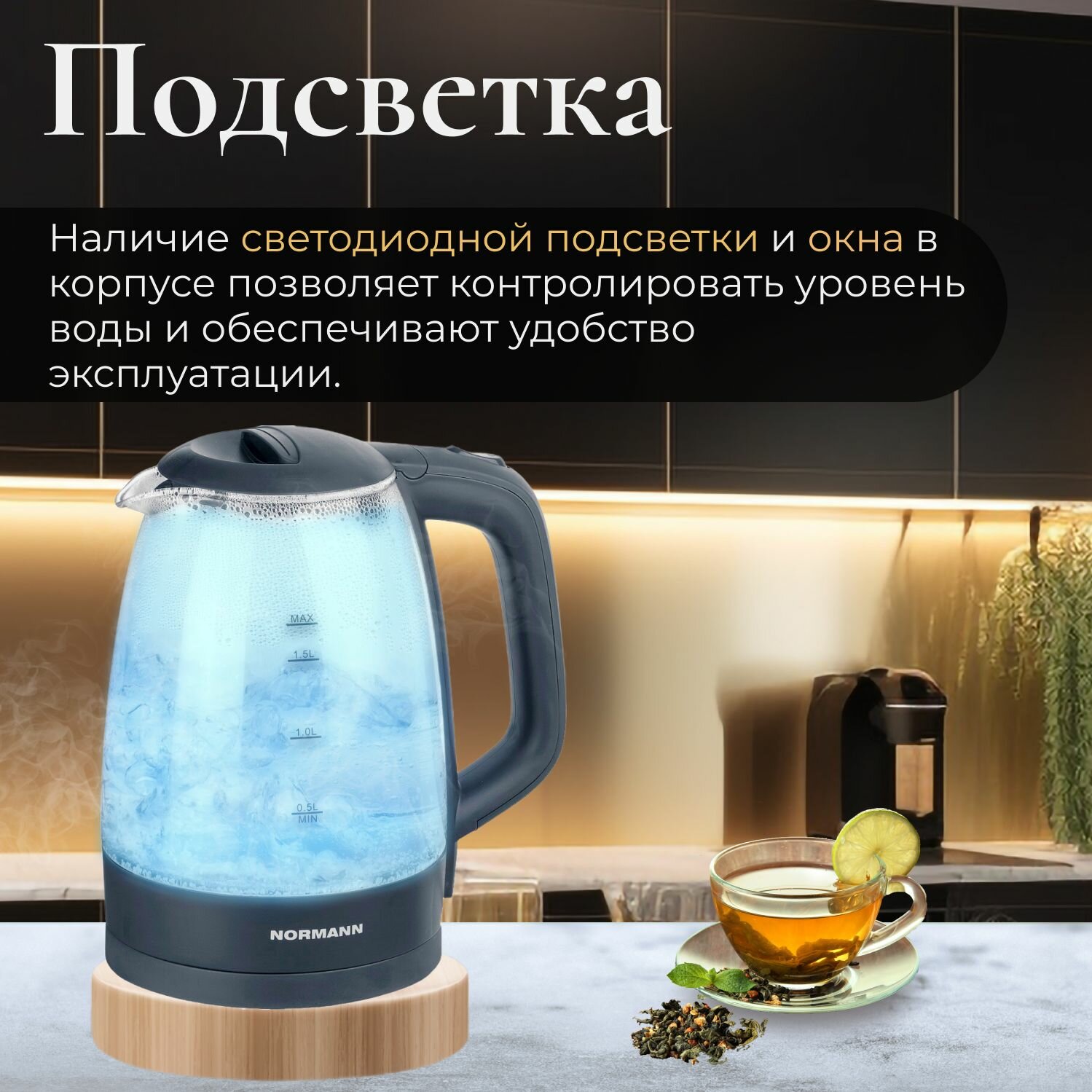 Чайник электрический стеклянный с подсветкой 1,7 литра AKL-236 NORMANN (2200 Вт)