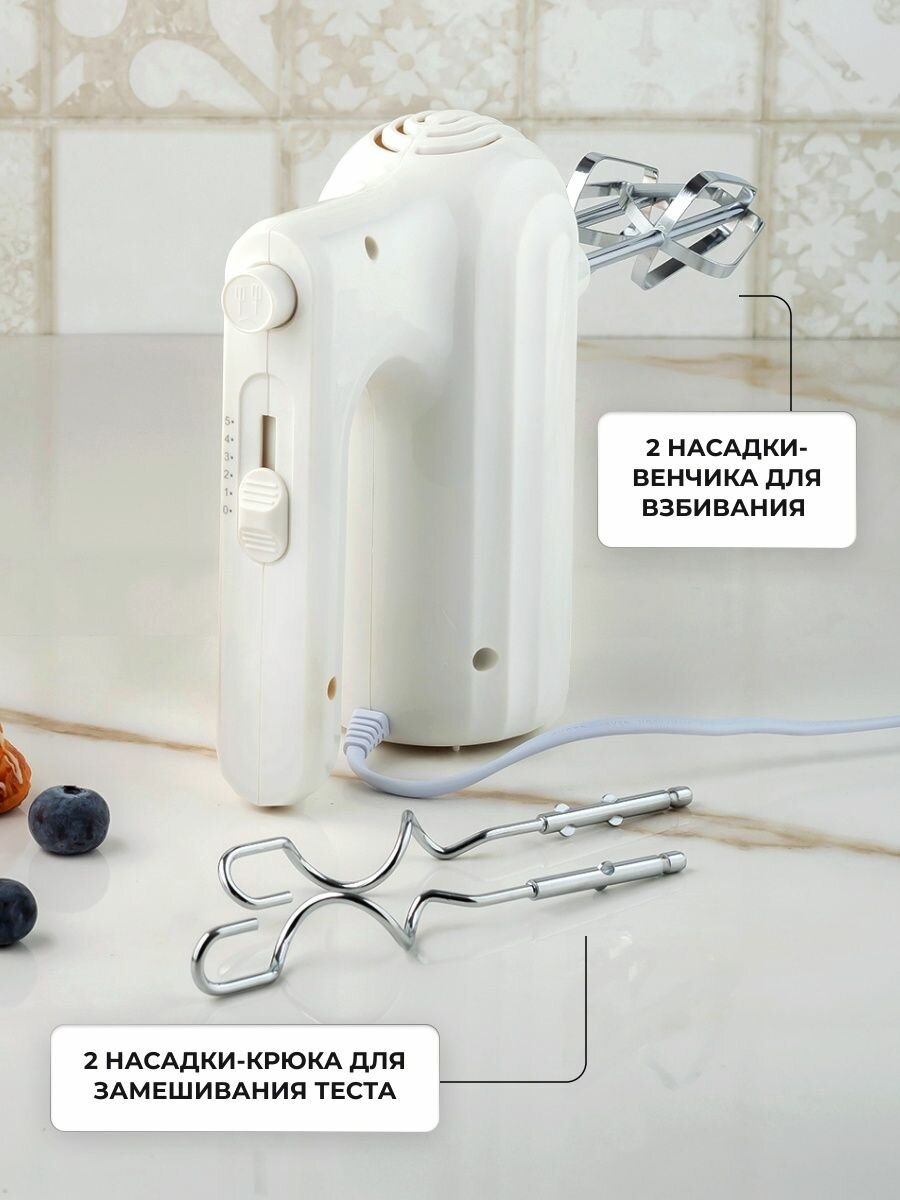Миксер ручной кухонный электрический IRIT IR-5437, 100 Вт, 5 скоростей, белый