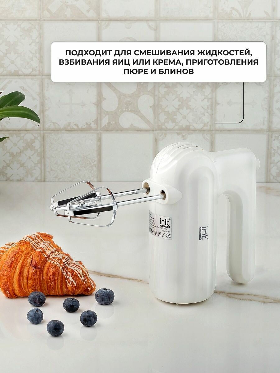 Миксер IRIT IR-5437, ручной, 100 Вт, 5 скоростей, белый интересное:
