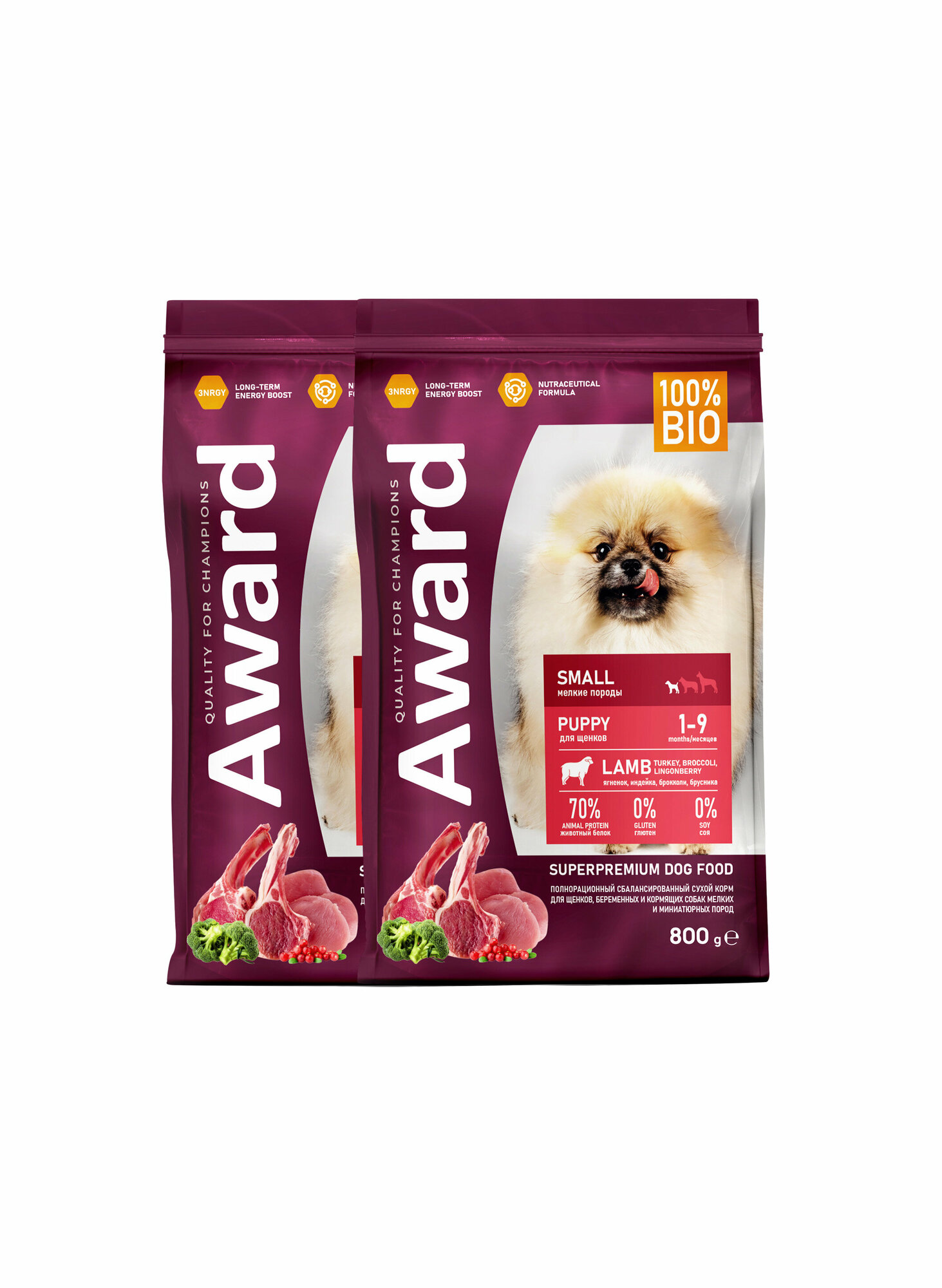 Купить Сухой корм AWARD для щенков от 1 мес, беременных и кормящих сук мелких и мин. пород с ягненком и индейкой с добавлением брокколи и брусники 800г х 2 шт.