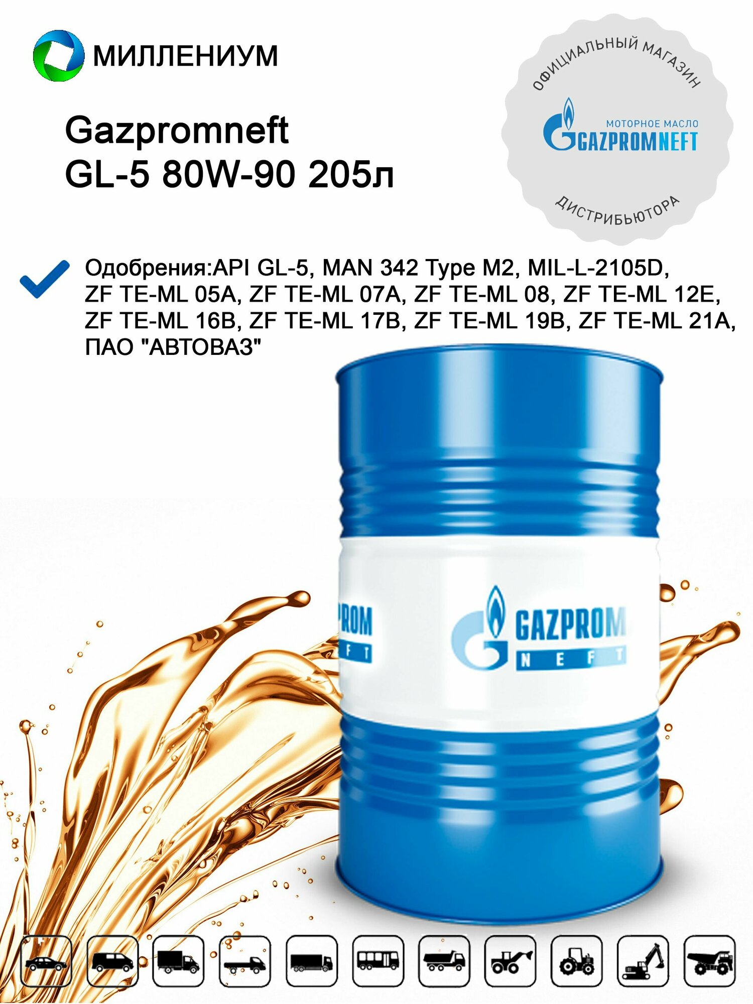 Масло gazpromneft 80w90 gl-5 трансмиссионное (205л), gazpromneft, 2389901278