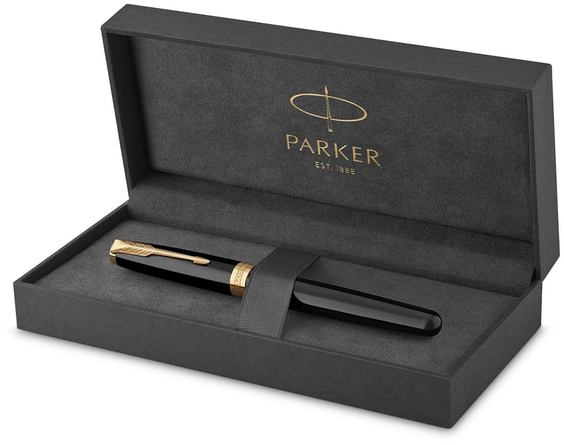 Ручка Parker перьев. Sonnet Core F539 (1931494) LaqBlack GT F сталь нержавеющая/позолота подар.кор.
