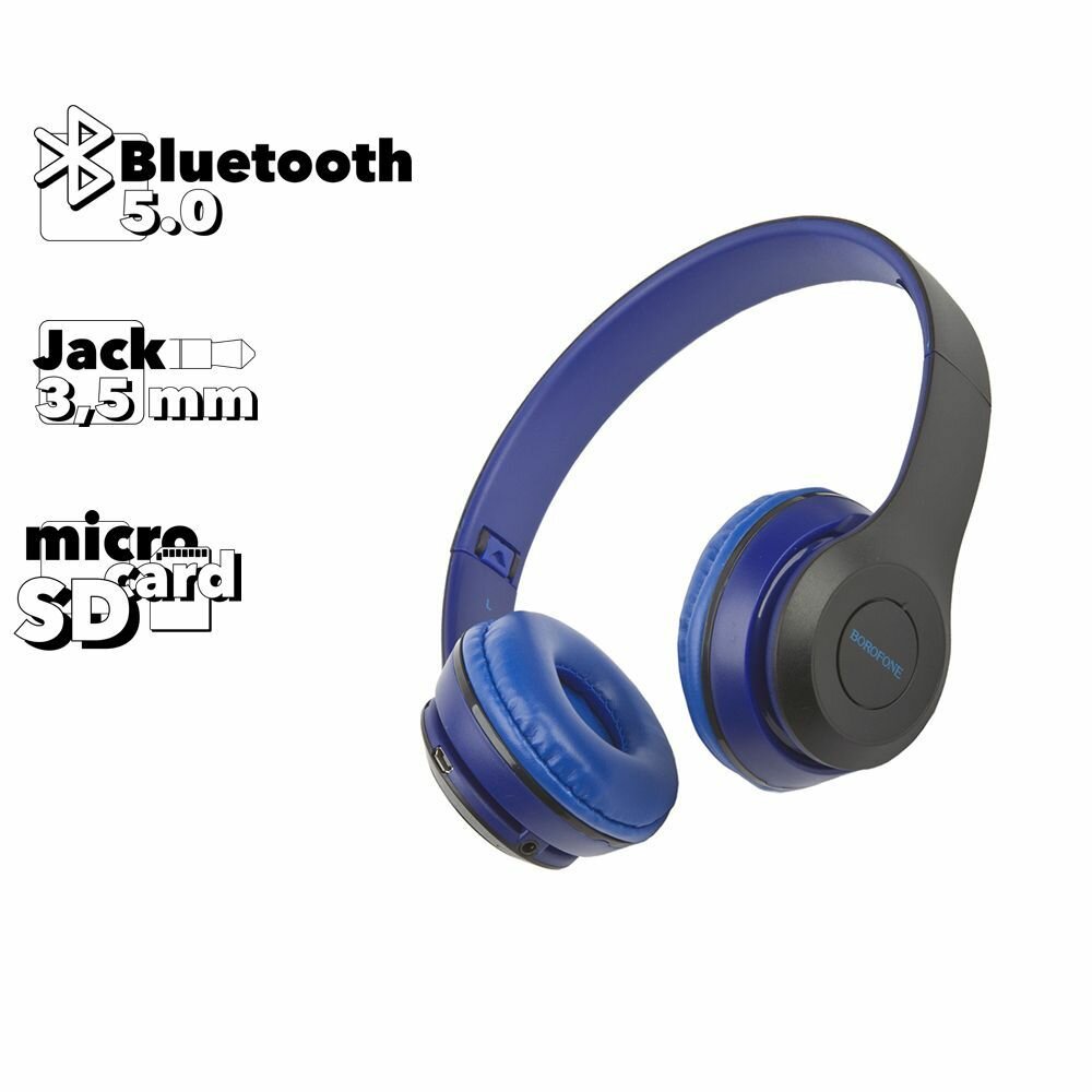 Купить Беспроводные наушники BOROFONE BO4 Charming Rhyme BT 5.0, 3.5 мм, microSD, bluetooth накладные синий