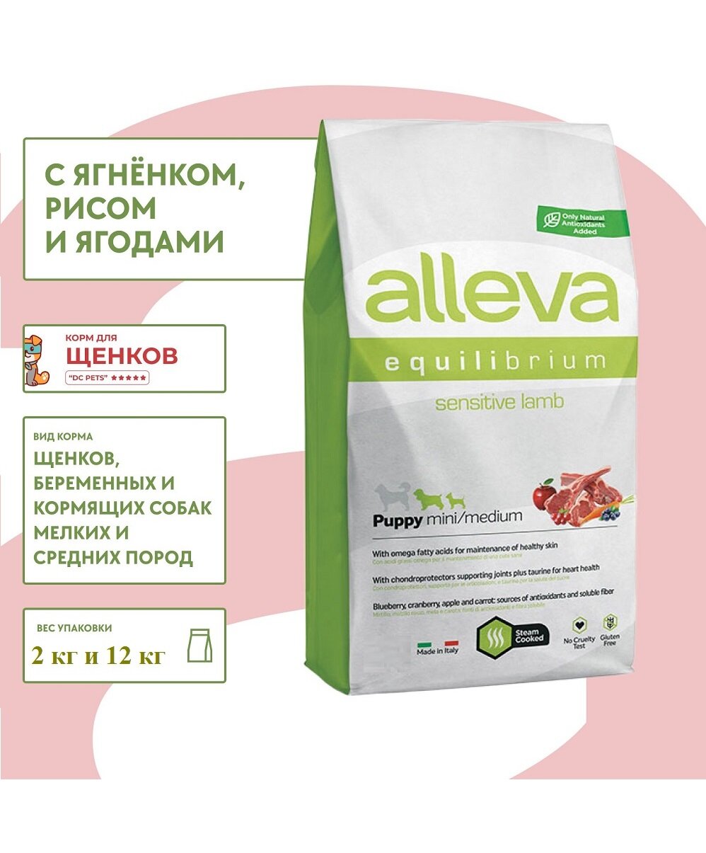 ALLEVA EQUILIBRIUM PUPPY MINI/MEDIUM SENSITIVE LAMB для щенков маленьких и средних пород с чувствительным пищеварением с ягненком (2 кг х 6 шт)