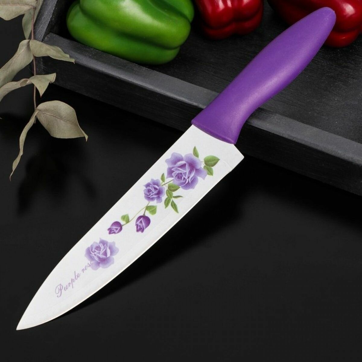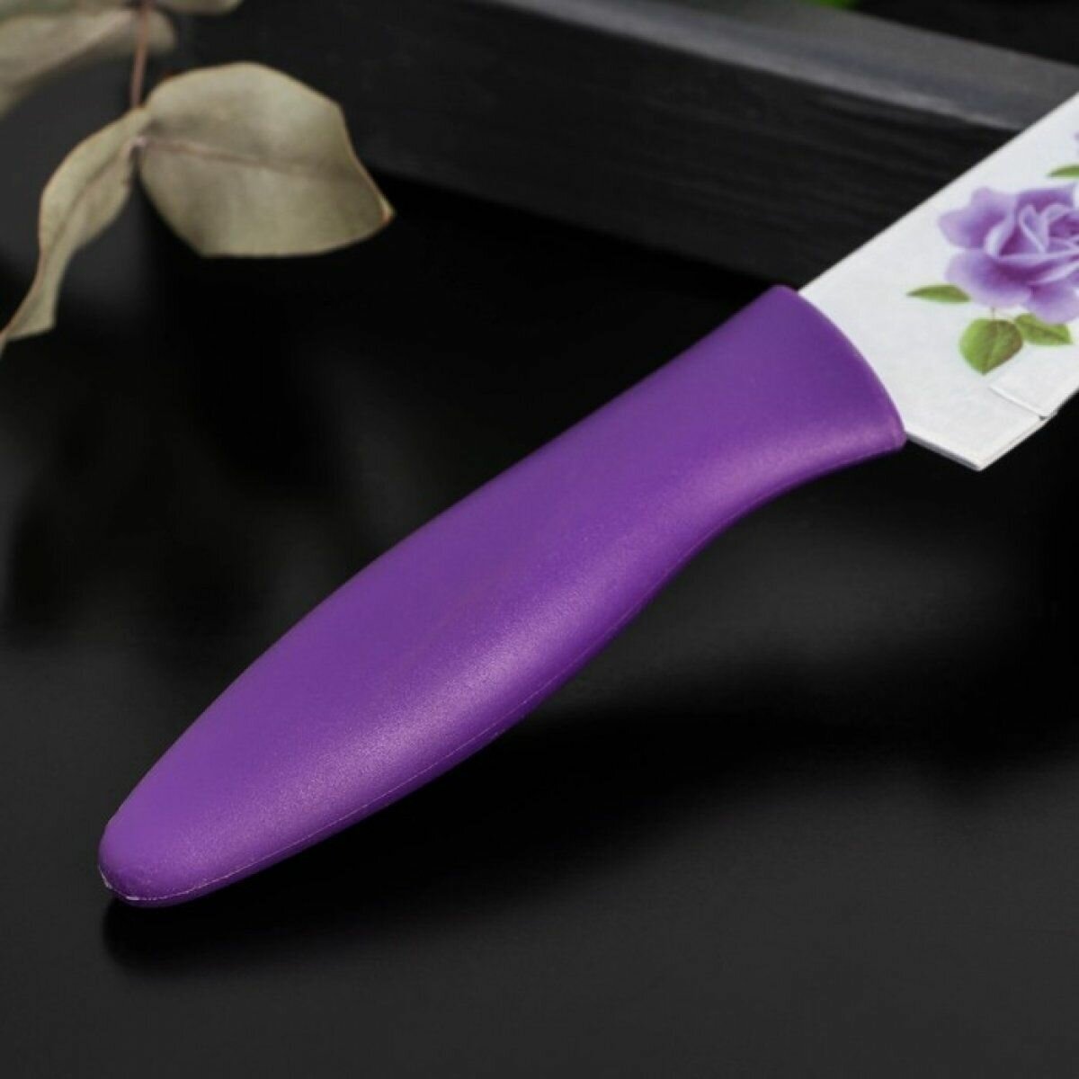Купить Доляна Нож кухонный с антиналипающим покрытием Доляна «Сиреневая роза», лезвие 20 см, цвет фиолетовый