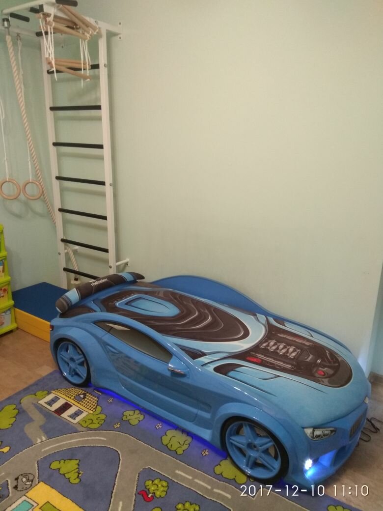 СохранитьFutuka Kids кровать-машина Neo Мерседес цвет синий c подсветкой фар и дна, спойлером, матрас в дизайне "sport" интересное: