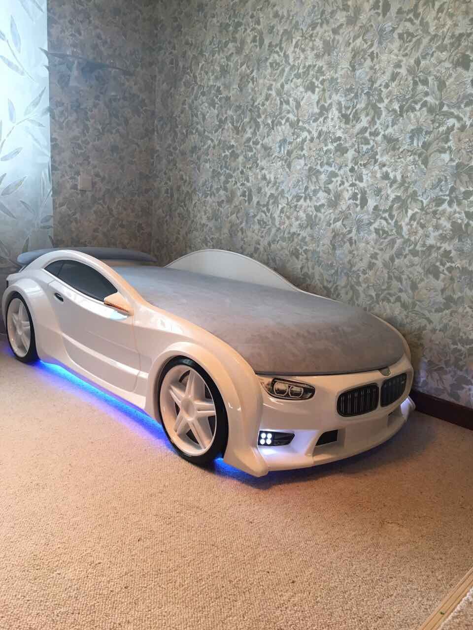 Futuka Kids кровать-машина Neo БМВ белый цвет белый c подсветкой фар и дна, спойлером, матрас в дизайне "sport"