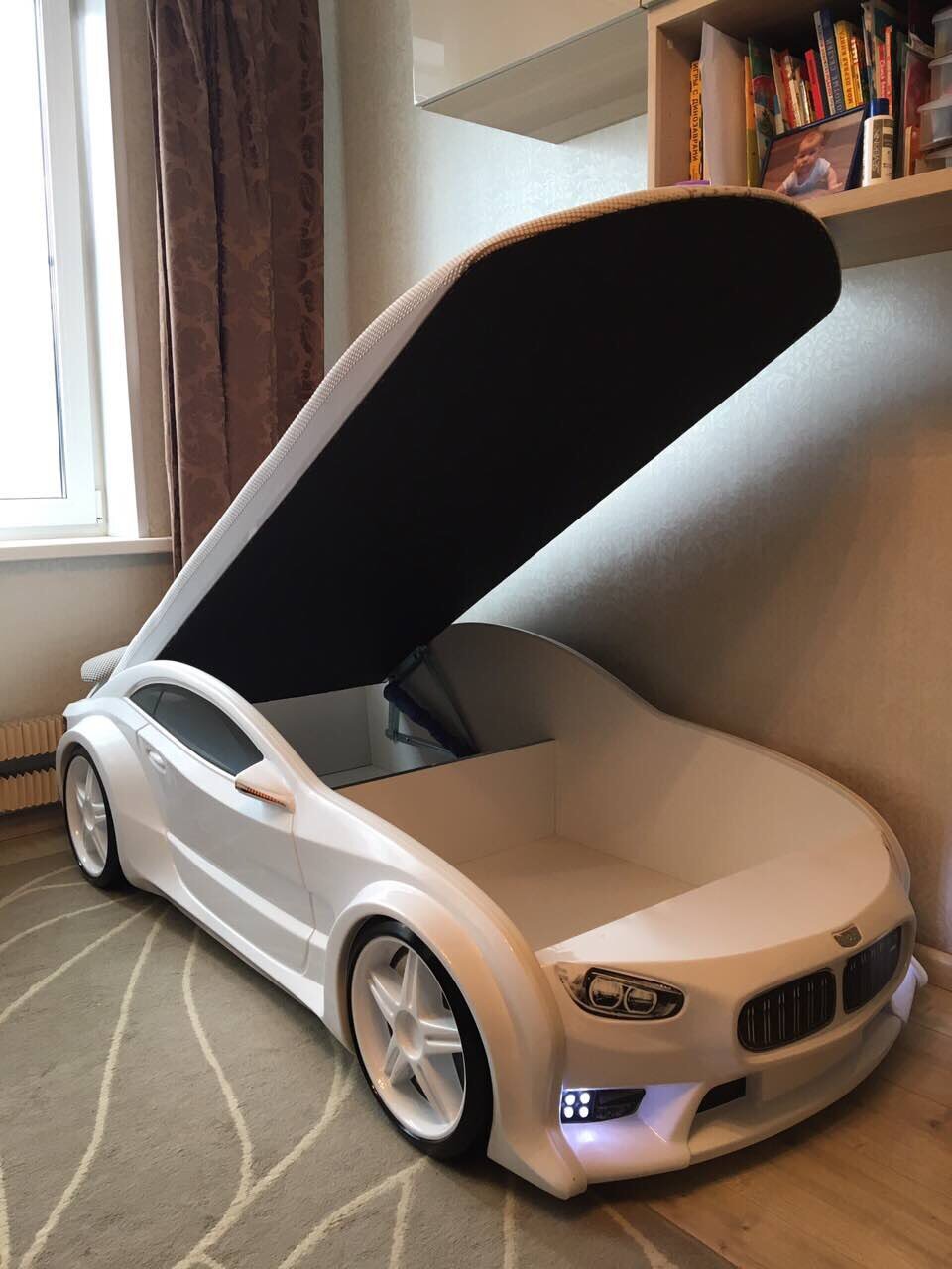 СохранитьFutuka Kids кровать-машина Neo БМВ белый c фарами интересное: