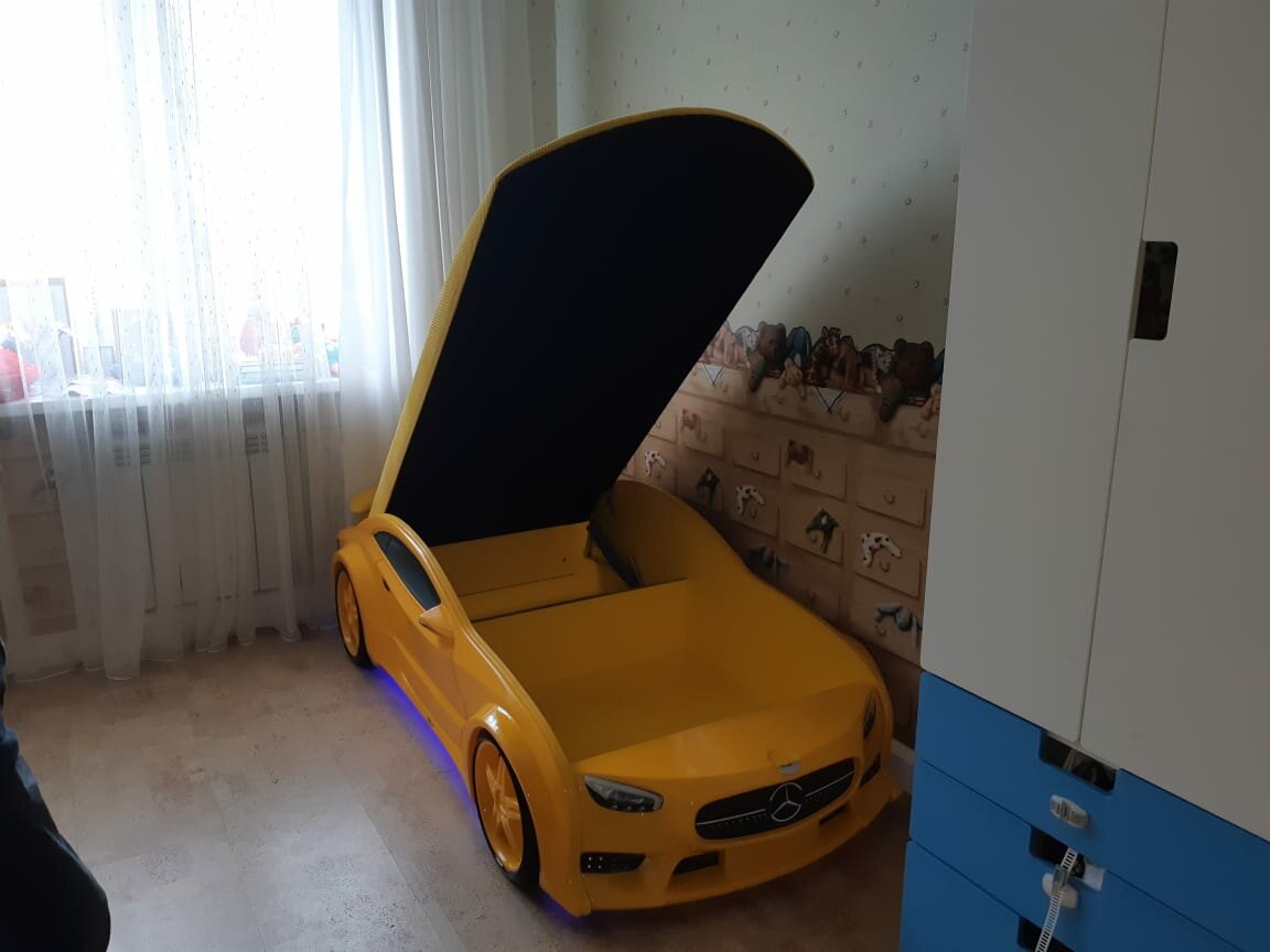 СохранитьFutukaKids "Neo Мерседес" - кровать-машина цвет желтый с фарами интересное: