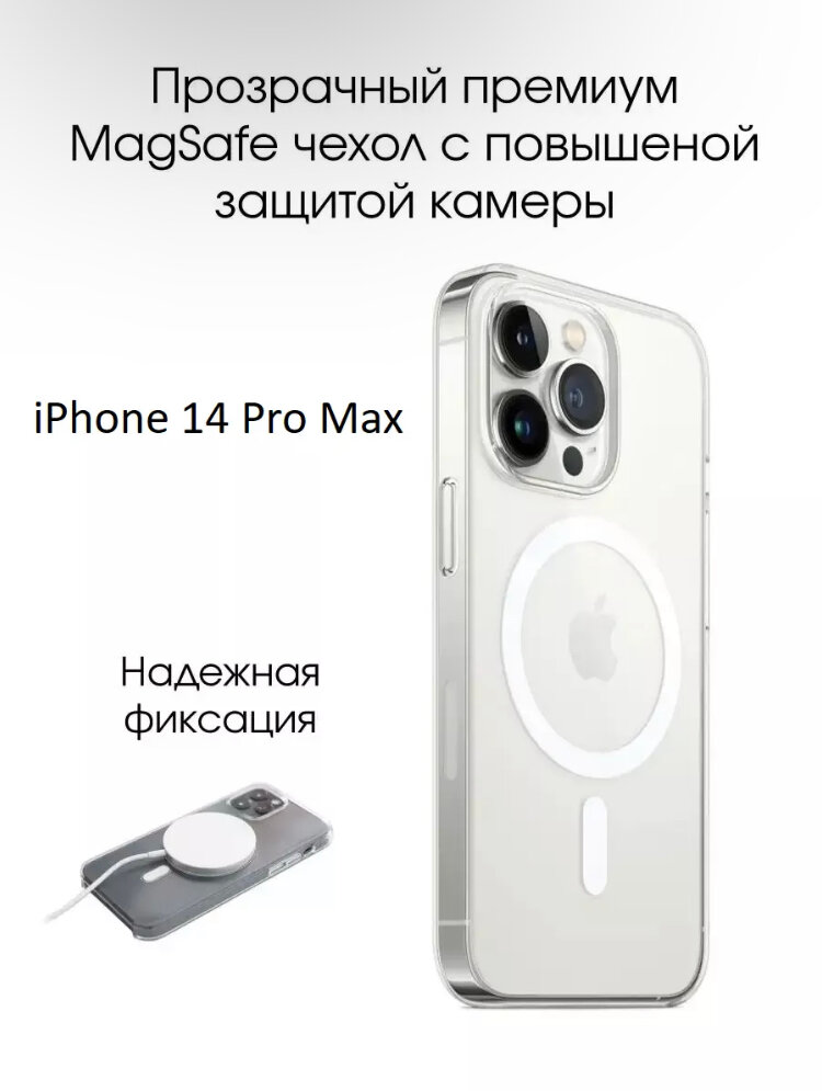 AV-Retail / Чехол силиконовый прозрачный с MagSafe для iPhone 14 Pro Max / Чехол усиленный противоударный