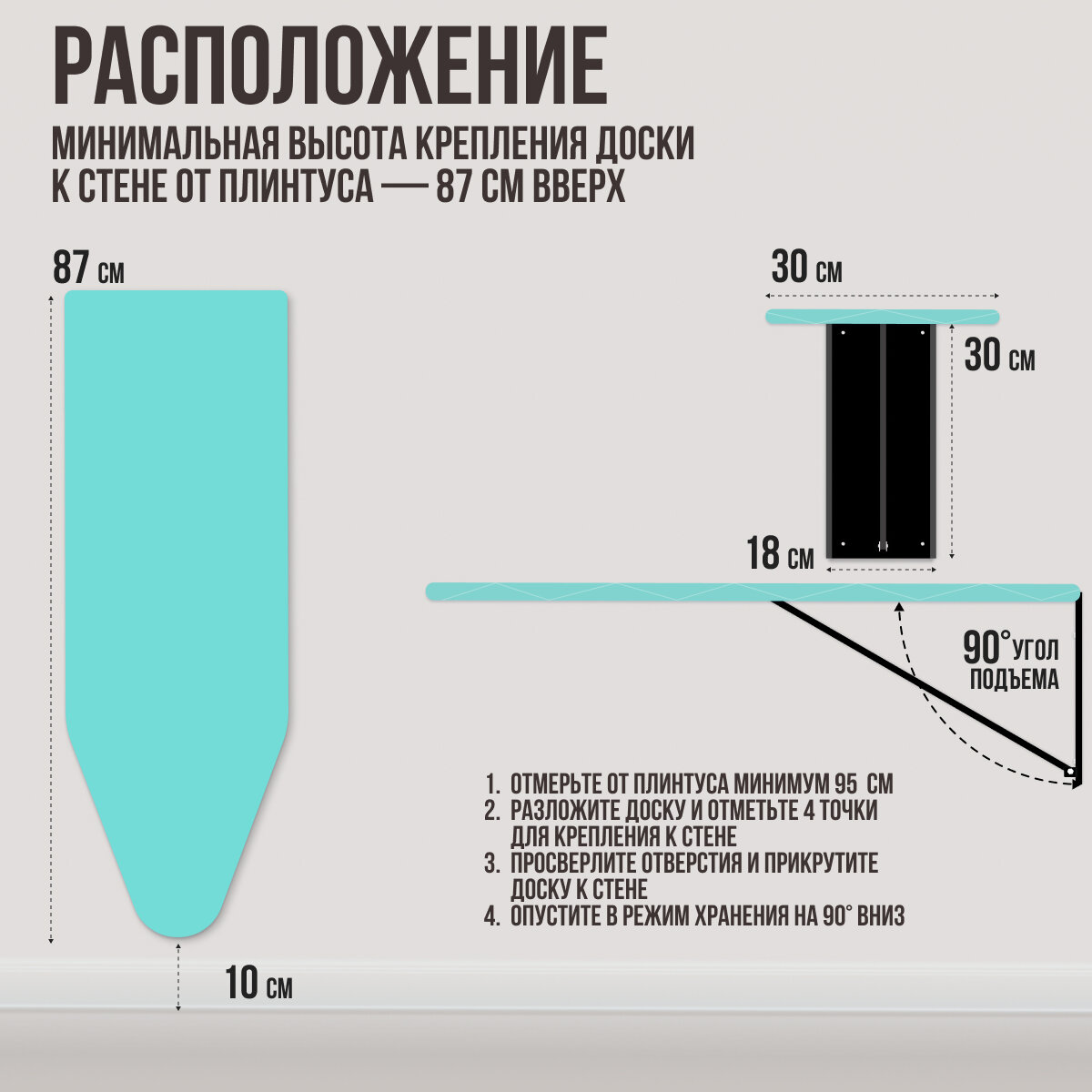 | Размеры гладильной поверхности (ДхШ) | 87 x 30 см |