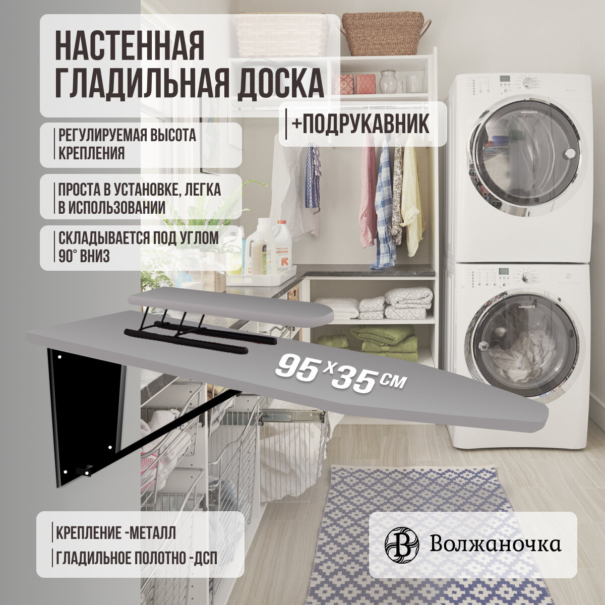 Ниже Вы можете прочитать отзывы на Волжаночка Гладильная доска настенная с подрукавником, размер 95х35см., цвет серый кварц, ознакомится с подробными характеристиками, посмотреть интересные обзоры и фотографии на Волжаночка Гладильная доска настенная с подрукавником, размер 95х35см., цвет серый кварц.