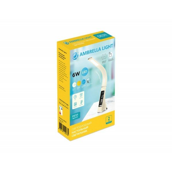 Настольная лампа Ambrella Light Desk DE511, Светодиодная, LED, Пластик/Бежевый, Пластик/Бежевый, Современный, В офис, На стол, Прямоугольный, Китай