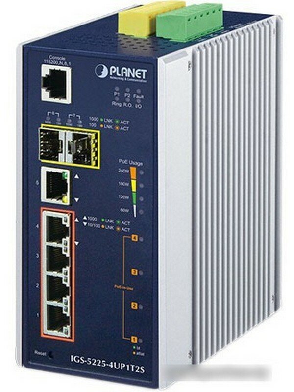 Управляемый коммутатор для рабочих групп PLANET Technology Corporation PLANET IP30 Industrial L2+/L4 4-Port 60W 1000T Ultra PoE+ 1-Port 1000T + 2-port 100/1000X SFP Full Managed Switch (-40 to 75 C, dual redundant power input on 48~56VDC terminal block, D