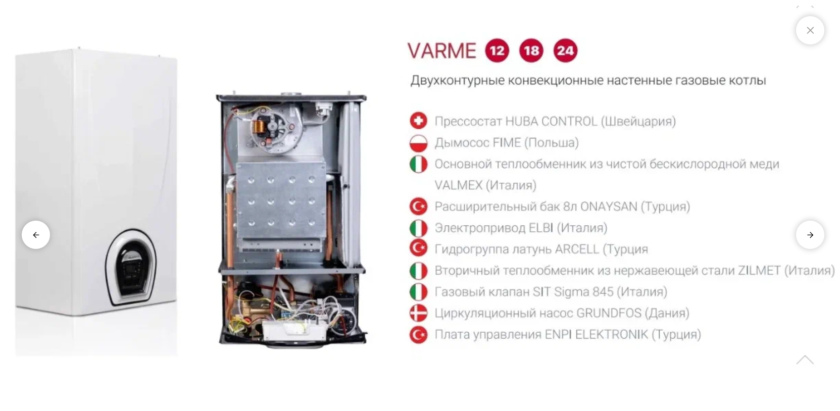 Котел газовый Federica Bugatti 18 кВт. VARME G18F4 (Федерико Бугатти) настенный конвекционный двухконтурный