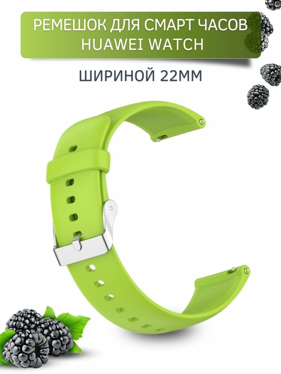Купить Силиконовый ремешок для Huawei Watch 3 / 3Pro / GT 46mm / GT2 46 mm / GT2 Pro / GT 2E 46mm (серебристая застежка) 22 мм, зеленый лайм