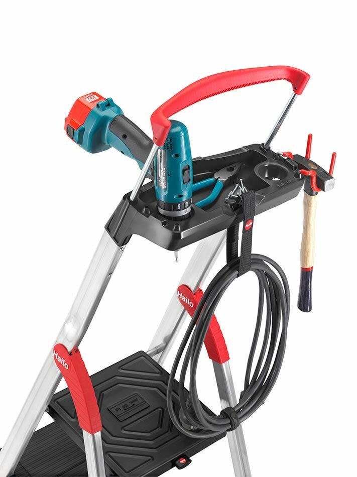 Стремянка 3 ступ. L100 TopLine, алюм., с лотком и выдвигающейся ручкой, Hailo, арт. 8050-307