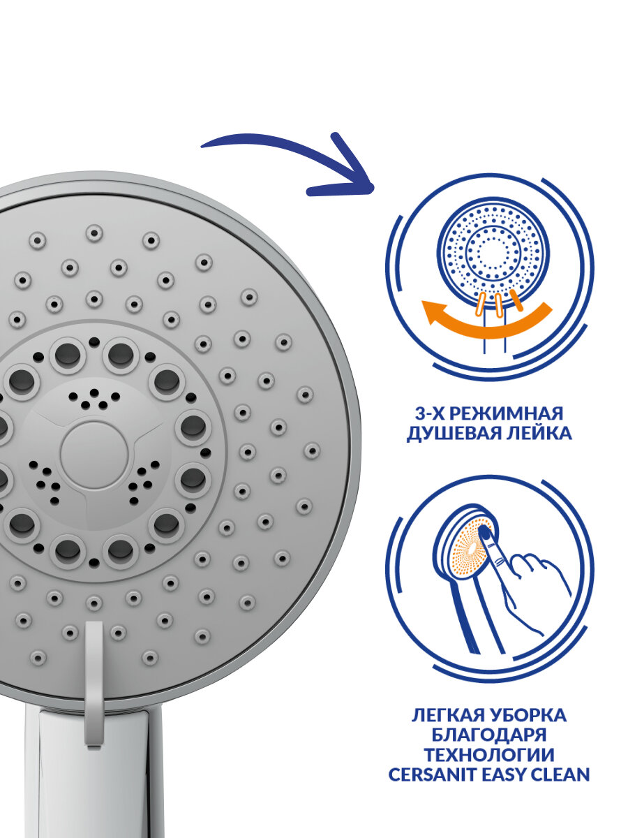 Душевой гарнитур со стойкой и шлангом Cersanit VIBE 150 см 3 режима 63067