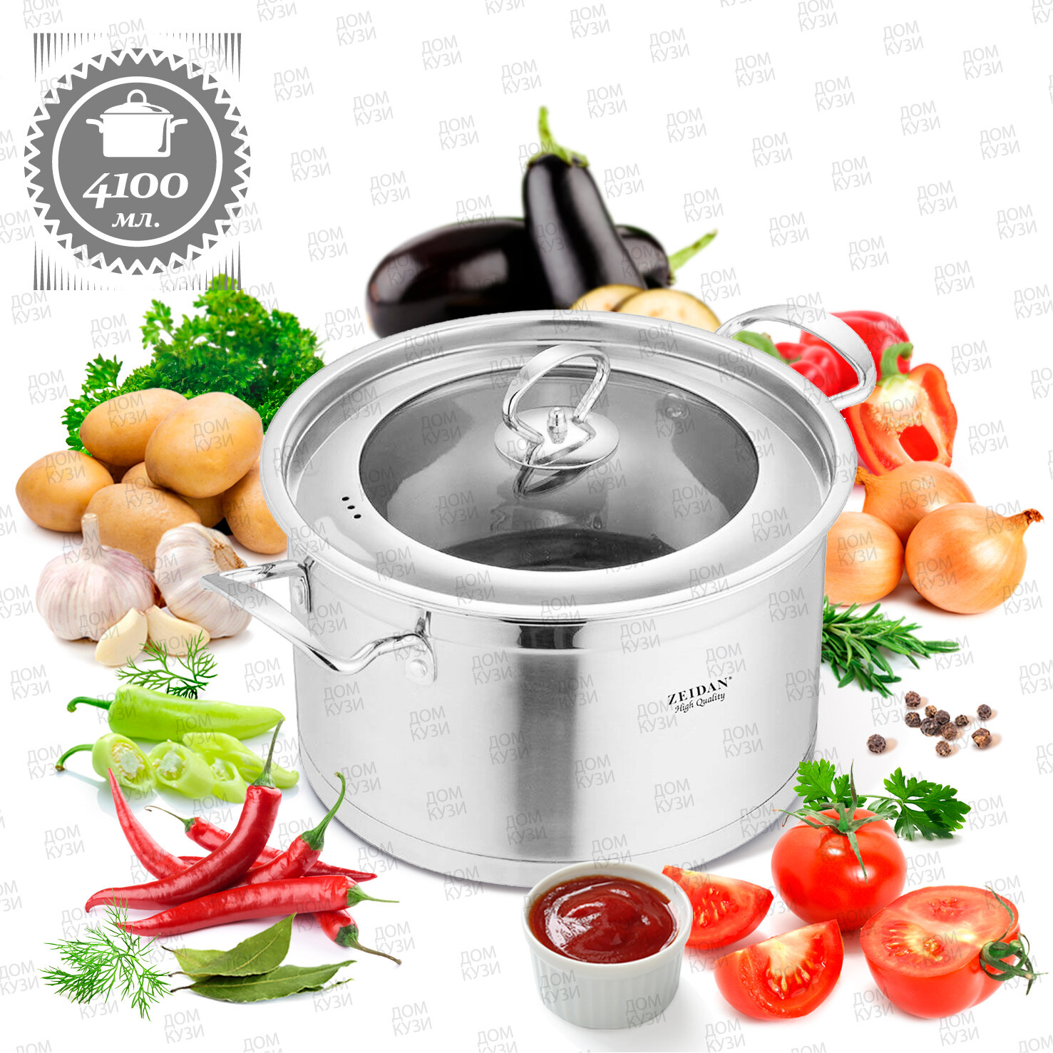 Кастрюля Zeidan Silver, 6.8 л, диаметр 26 см