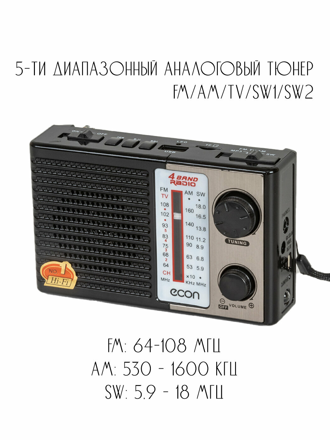 Радиоприемник ECON ERP-2400UR 64-108МГц, черный интересное: