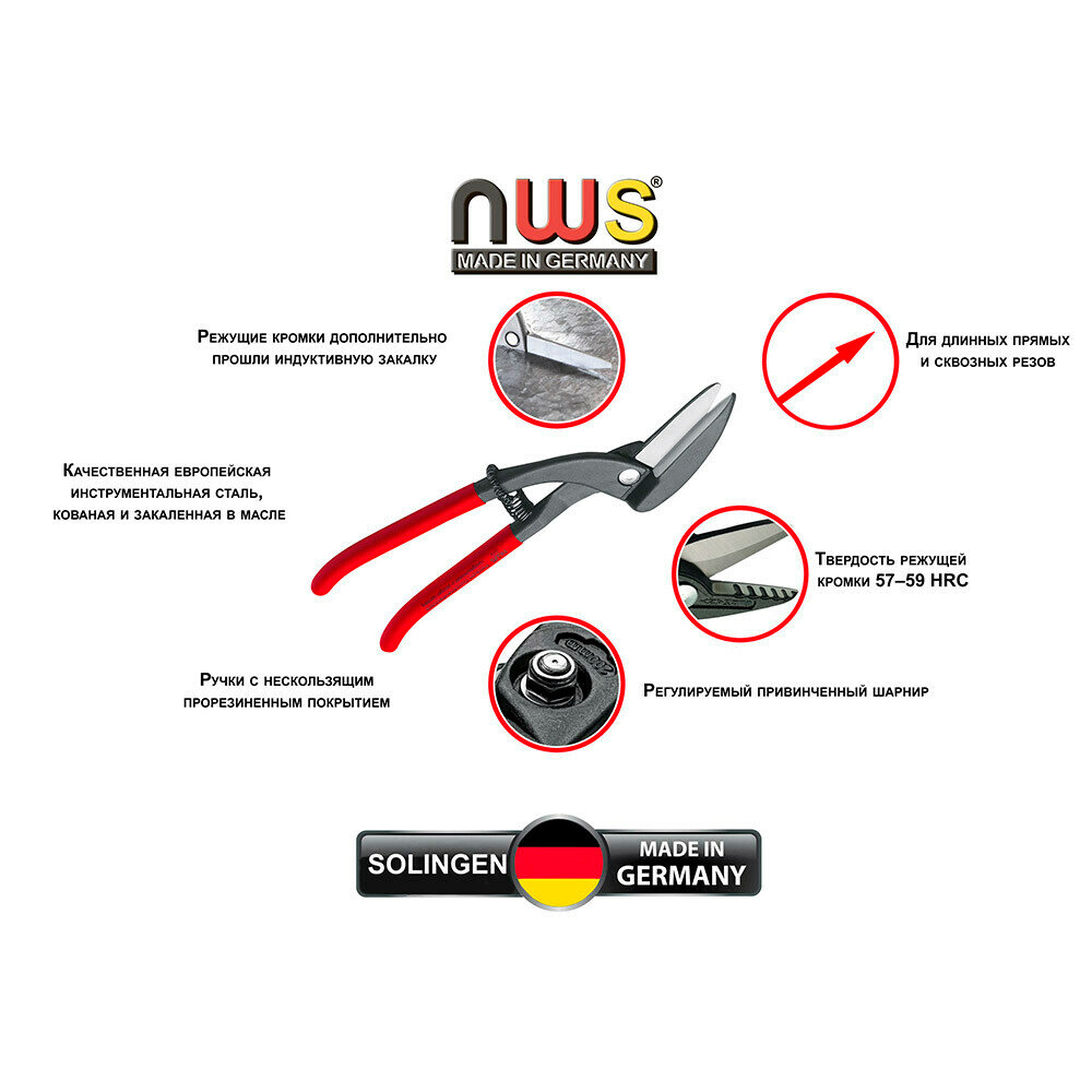 Ножницы по металлу NWS Pelikan длинная сквозная резка 300 мм