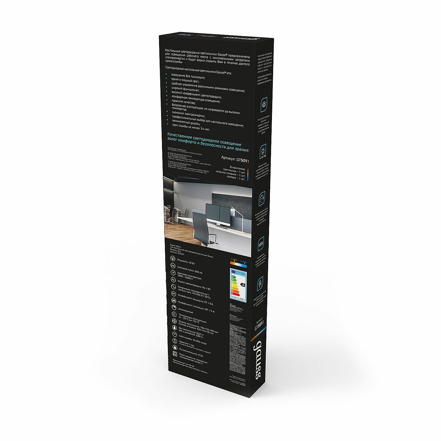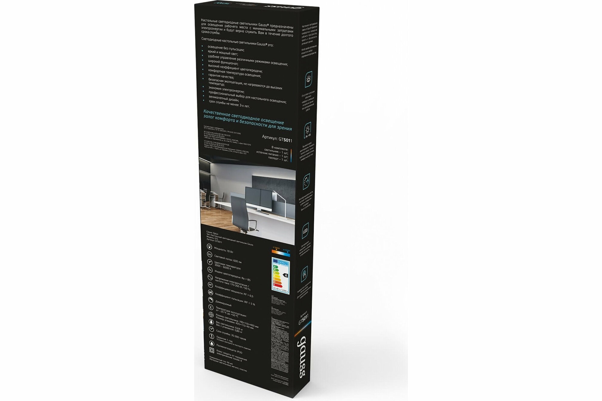 Лампа офисная светодиодная gauss GTL501, 10 Вт, черный