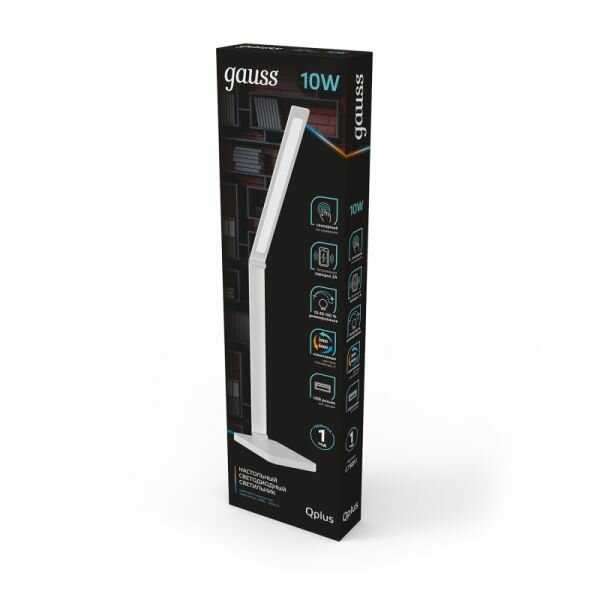 Gauss Светильник настольный Gauss Qplus GTL501 10W 600lm 3000-6000K 170-265V белый диммируемый Qi USB LED