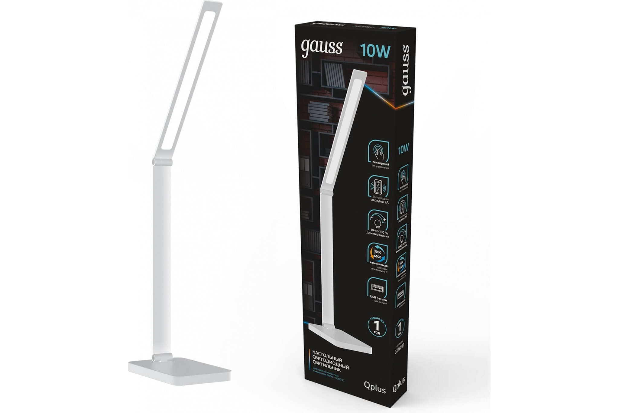 Светильник настольный Gauss Qplus модель GTL501 10W 600lm 3000-6000K 170-265V белый диммируемый Qi USB LED 1/12