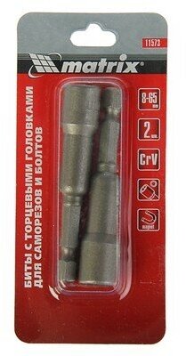 Биты с торцевыми головками 8 мм, 65 мм, 2 шт. Matrix 11573