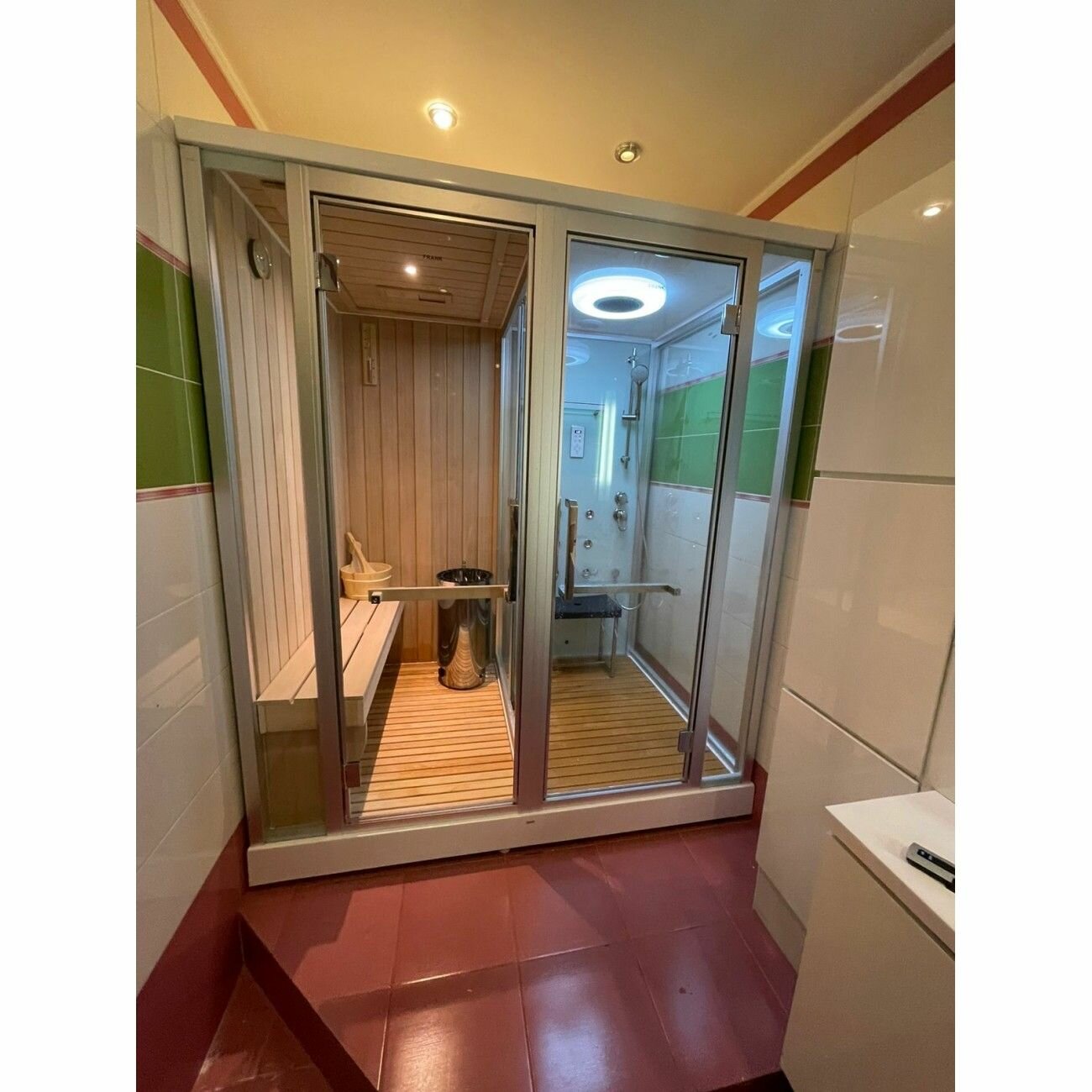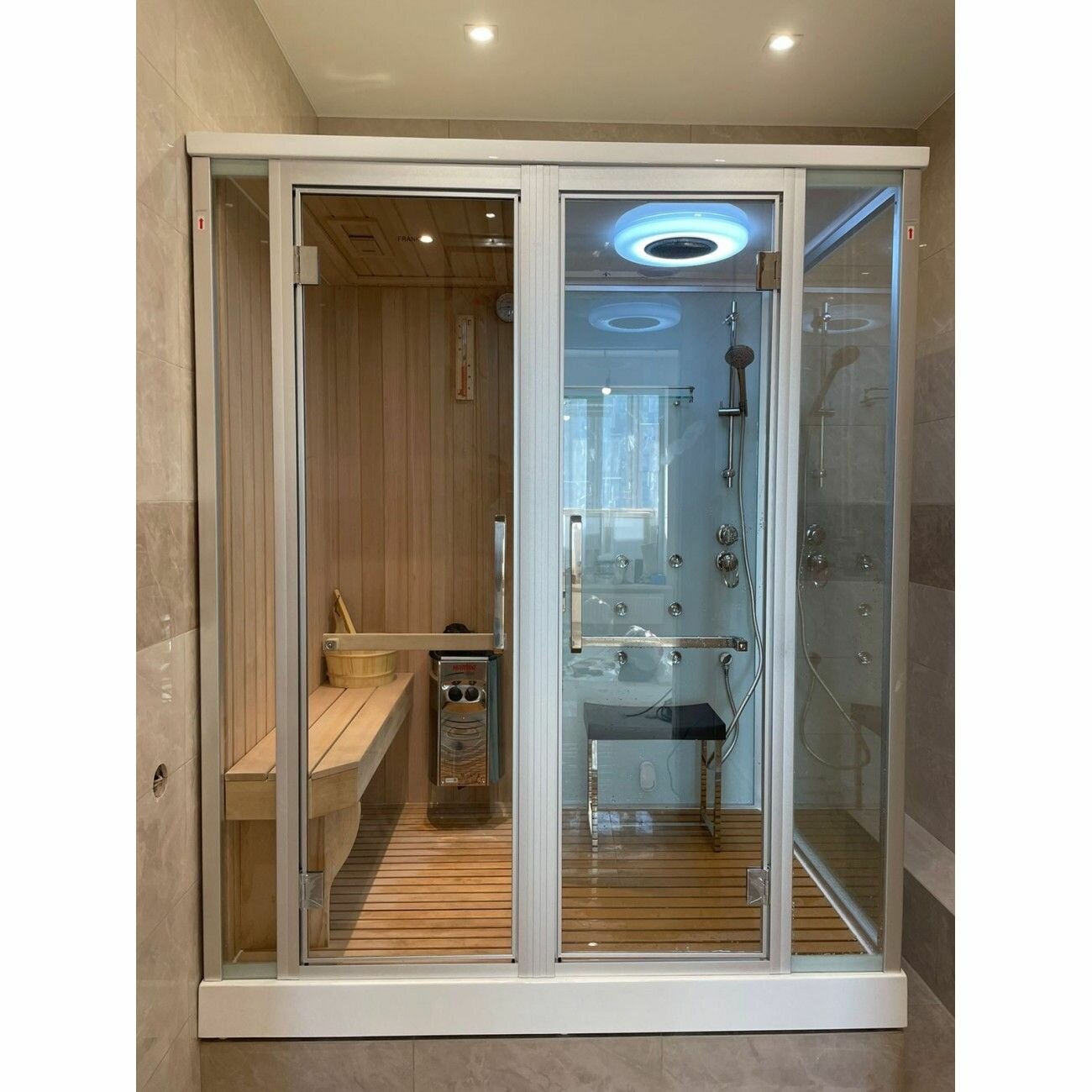 Заказывал сауну вместе с установкой себе в дом. Жена сказала что ей важно чтобы так же мы приобрели душевую кабину! Вот тут и мы с ней и убили двух зайцев! Сауна комбинированная! В ней можно как посидеть в молоке и хорошенько пропариться так и следом перейти в зону душевой кабины и принять душ с приятной музыкой! Я очень доволен покупкой и если потребуется еще одна в мой родной город то я обязательно приобрету её! Спасибо производителю за то что учел абсолютно все детали этого товара! Очень приятно что все таки есть еще на рынке достойные производители на которых можно положиться! |