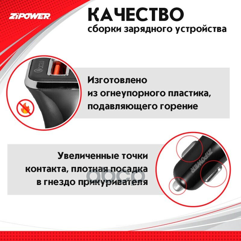 Устройство Зарядное Для Телефона "Zipower" (Usb Qc3.0 • 5 В-3,1 А) ZiPOWER арт. PM6647