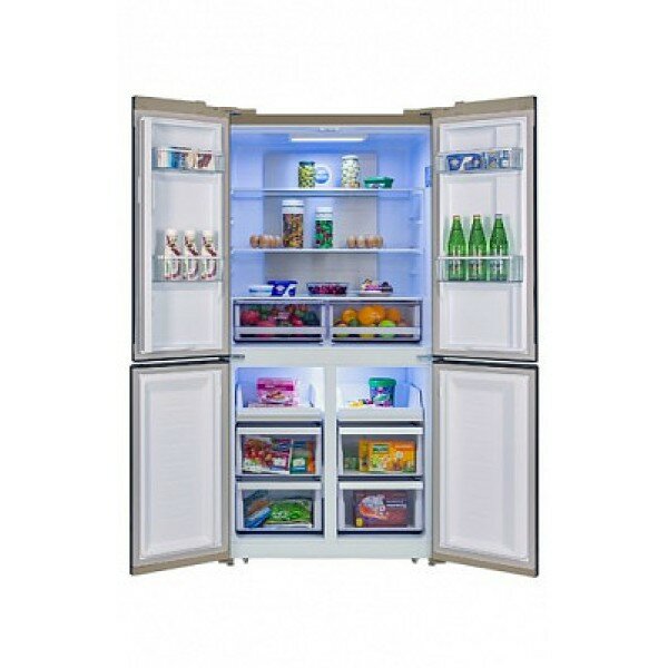 Холодильник HIBERG RFQ-500DX NFGY inverter отдельностоящий, 4 двери, 545 л, бежевое стекло с полосками