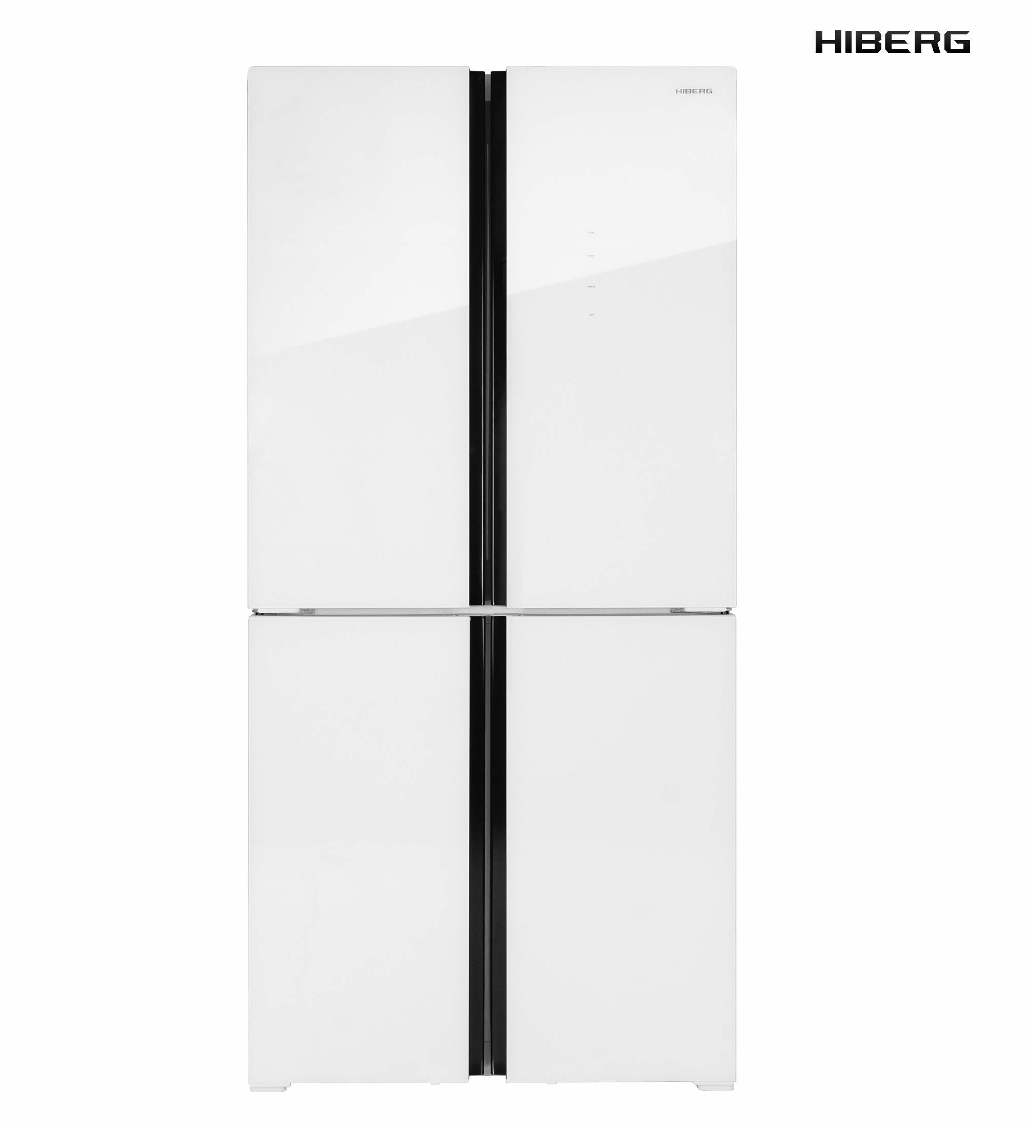 Холодильник HIBERG RFQ-500DX NFGW inverter отдельностоящий, 4 двери, 545 л, белое мерцающее стекло
