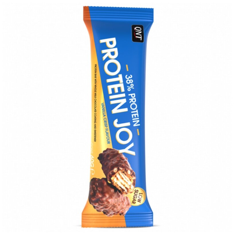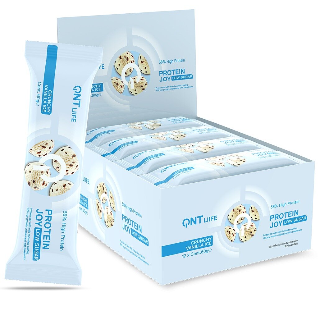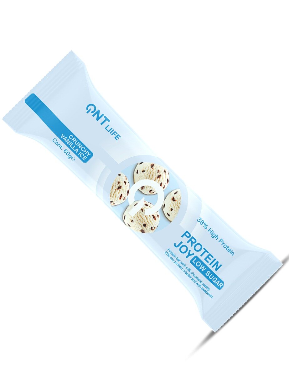 QNT Protein Joy Сrunchy Vanilla Ice 12х60g/ Батончики "Протеин Джой" ванильное мороженое 12х60гр (упаковка)