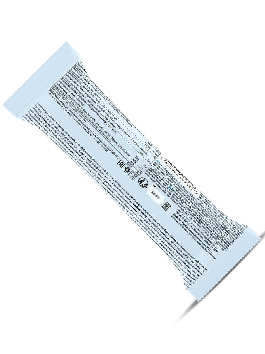 | Дополнительная информация | рекомендации по применению: Потребляйте между приемами пищи или после тренировок.; состав: молочный шоколад 30% (подсластитель E965, масло какао, цельное сухое молоко, масса какао, эмульсия E322 (содержит соевую кислоту), молочный белок, соевый белок, увлажнитель E422, коллагеновые пептиды, подсластители E965 / E955, олигофруктозу, наполнитель E1200, масло какао, пальмовый жир, крахмал тапиоки, сухое цельное молоко, какао-порошок с низким содержанием жира, эмульсия E322 (содержит соевую), авур, соль, цвет E150a. |