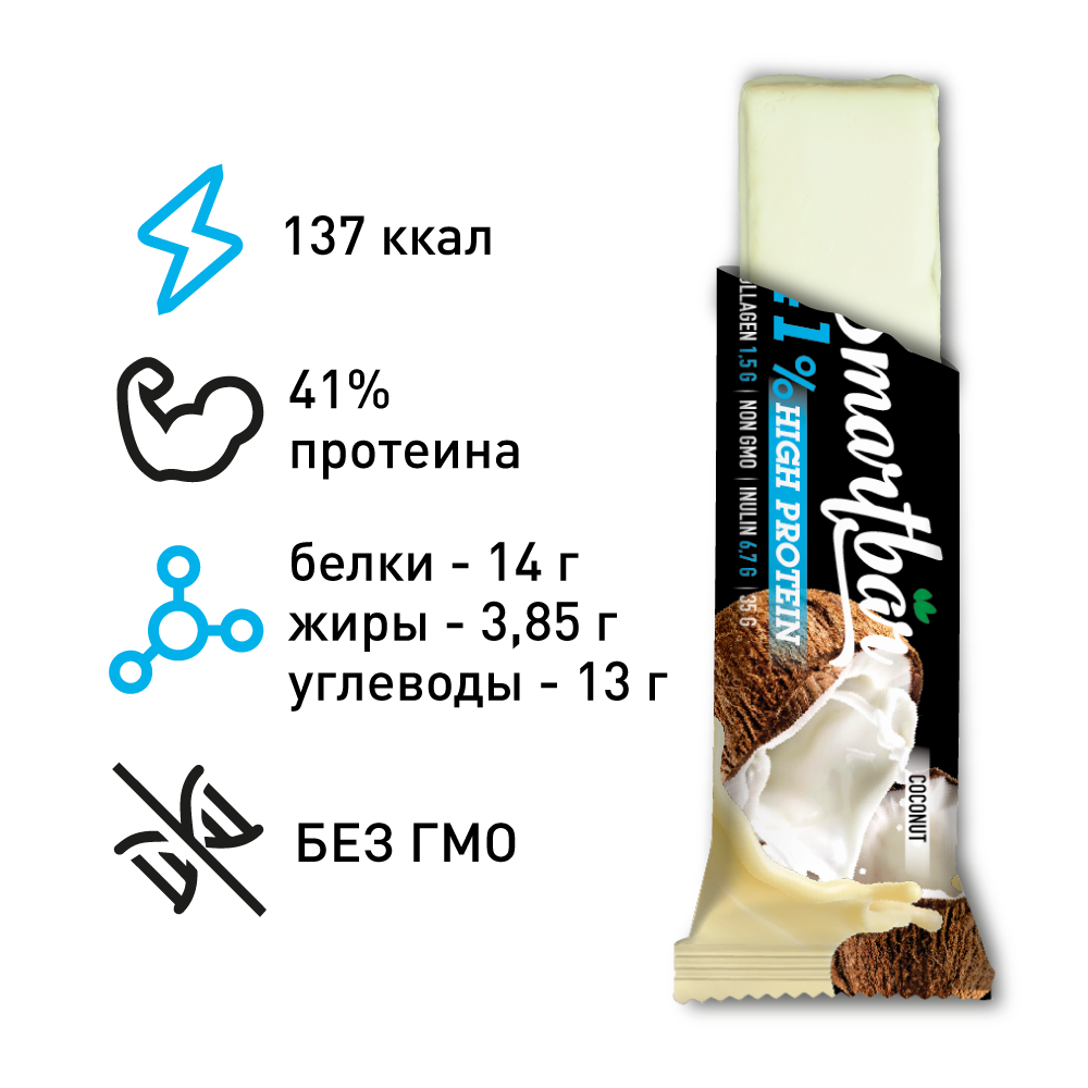 Протеиновые батончики SmartBar Protein Pro 41% "Кокосовый" 35г (25шт)